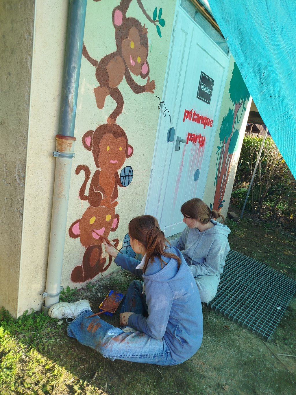 Sous leur supervision, ils ont rĂ©alisĂ© une superbe fresque sur les murs des sanitaires publics derriĂšre la mairie. đšđ