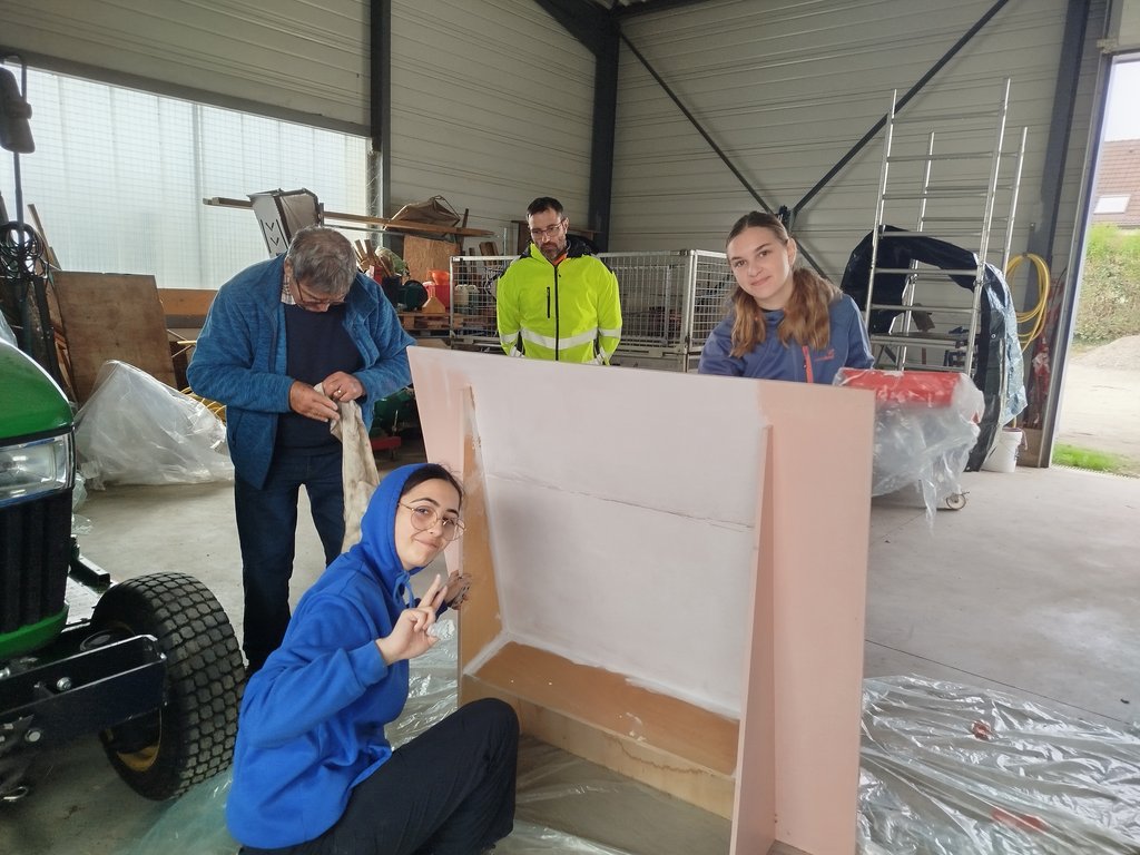 MalgrĂ© une mĂ©tĂ©o capricieuse âđš, leur motivation est restĂ©e intacte ! Un petit ajustement sera Ă prĂ©voir sur la porte, la pluie ayant fait couler la peinture.