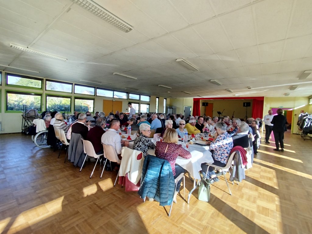 Le cortège s’est ensuite retrouvé à la salle polyvalente pour le vin d'honneur, suivi du repas des aînés de plus de 65 ans, servi par le restaurant La Petite Auberge.