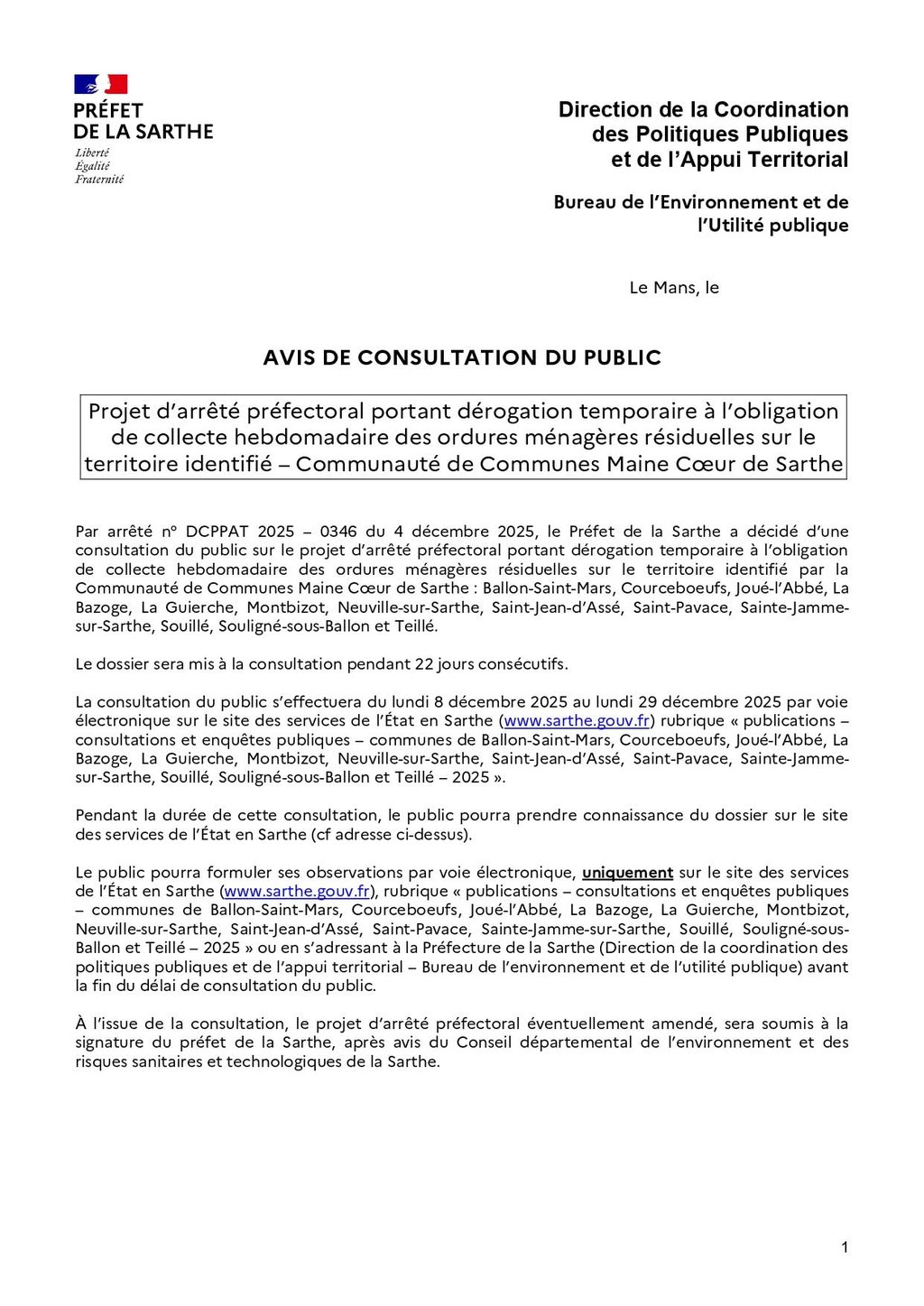 AVIS DE CONSULTATION PUBLIQUE - ORDURES MÉNAGÈRES