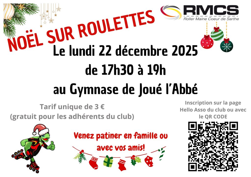 "Noël sur roulettes" aura lieu le lundi 22 décembre 2025 au gymnase de Joué l'Abbé de 17h30 à 19h.
